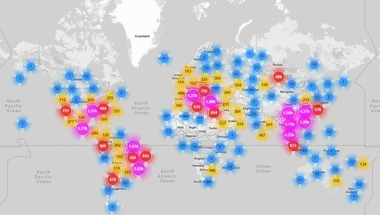By early December, sinkhole data revealed the botnet's true scale: over 2.7 million unique IPs in just three days, with peak active bots reaching 1.83 million on December 4. Infections span 222 countries, concentrated in Brazil, India, the United States, Argentina, South Africa, and the Philippines.